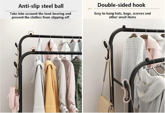 Spécifications :- Couleur : Noir- Matériau : Métal Dimension : Hauteur max 160cm /Largeur : 110cm /Profondeur : 57cm SOLIDE ET ROBUSTE : Notre portant à vêtements est fait d'un tube métallique épais et robuste, qui n'est pas facile à plier. Une forte capacité portante et possède un cadre inférieur...