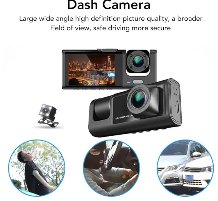 Capture vidéo complète : enregistrez simultanément les vues avant, intérieure et arrière de votre voiture, améliorant ainsi la fiabilité des preuves et l'identification des accidents.