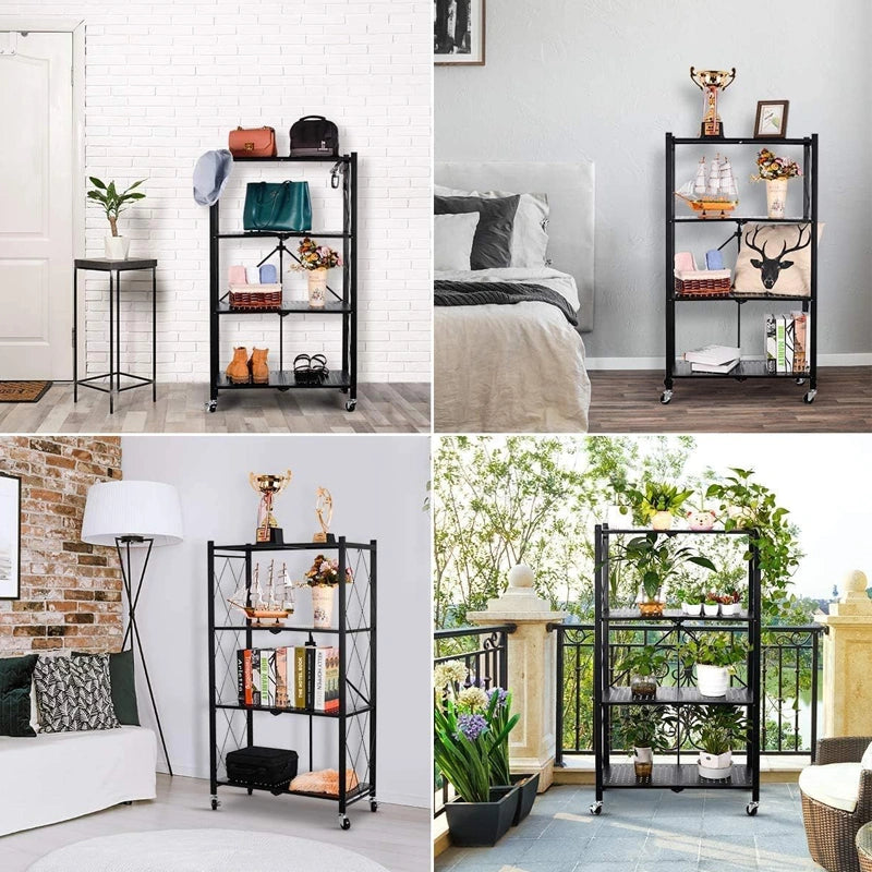 Gagnez de l’espace en toute simplicité avec cette étagère de rangement pliable à 4 niveaux . Conçue pour être pratique et robuste, elle ne nécessite aucune installation : dépliez-la et elle est prête à l’emploi !